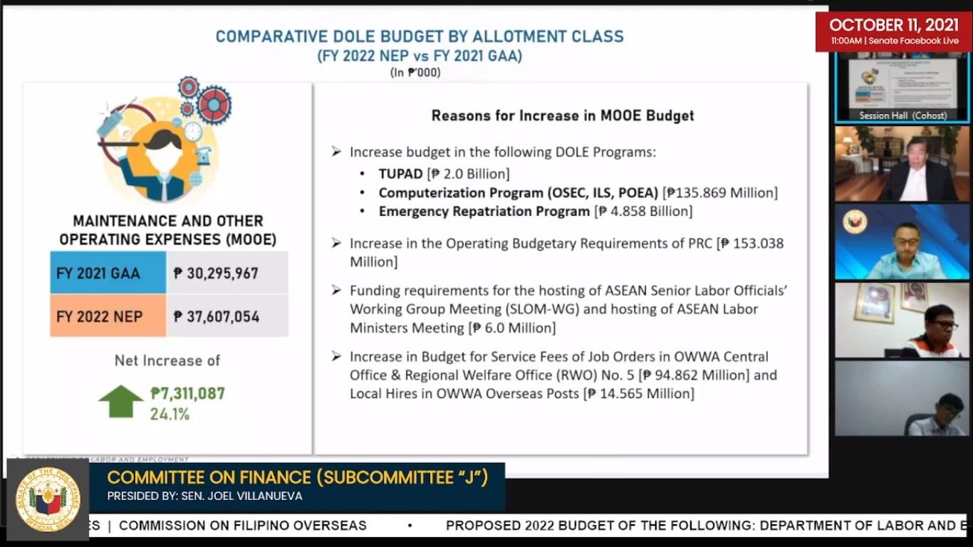 The Senate panel approved DOLE’s proposed budget for 2022 at the committee level. — BM, GMA News